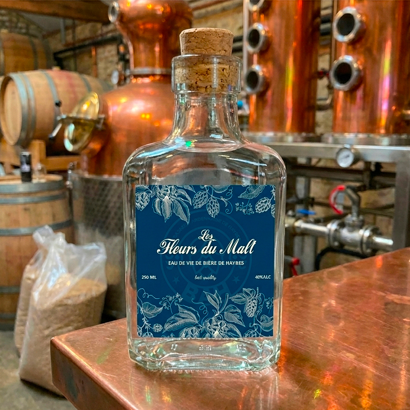 - Eau de vie de bière "Les Fleurs du malt" élaborée en collaboration avec la distillerie Charlier de Warcq.